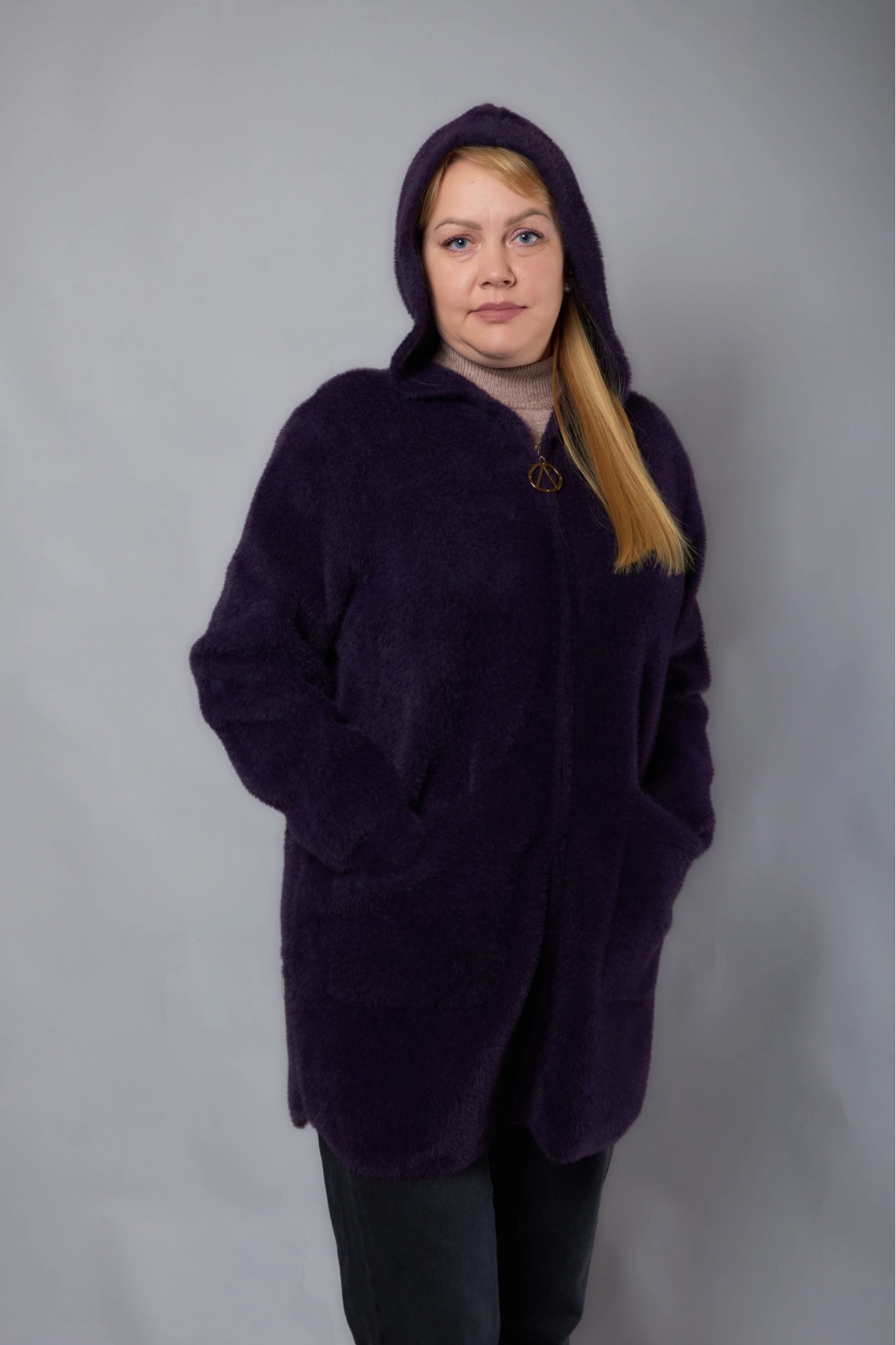 Кардиган з капюшоном, розміри 46–66 Стильний та теплий кардиган прямого крою, який ідеально підходить для щоденного носіння. Модель виконана з м’якого, щільного ворсистого матеріалу, що добре зберігає тепло та приємний до тіла. Капюшон оздоблений об’ємним м’яким хутром, яке додає образу елегантності та затишку. Особливості моделі: