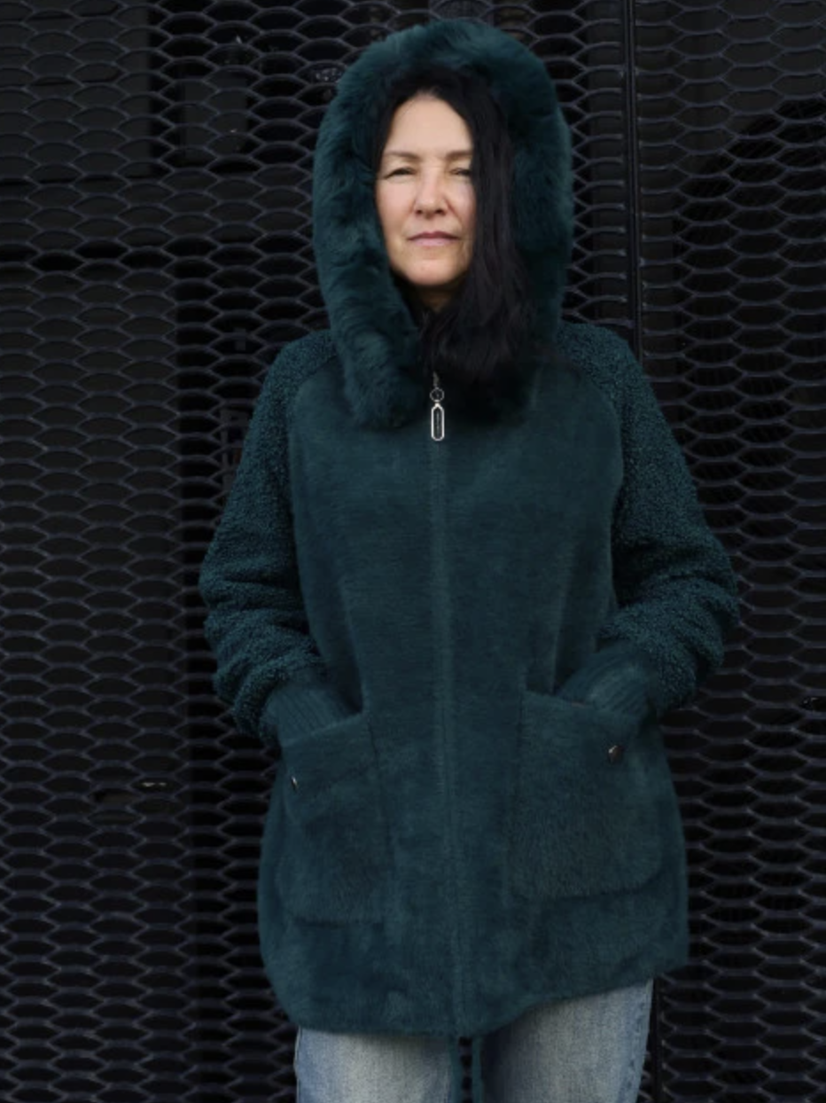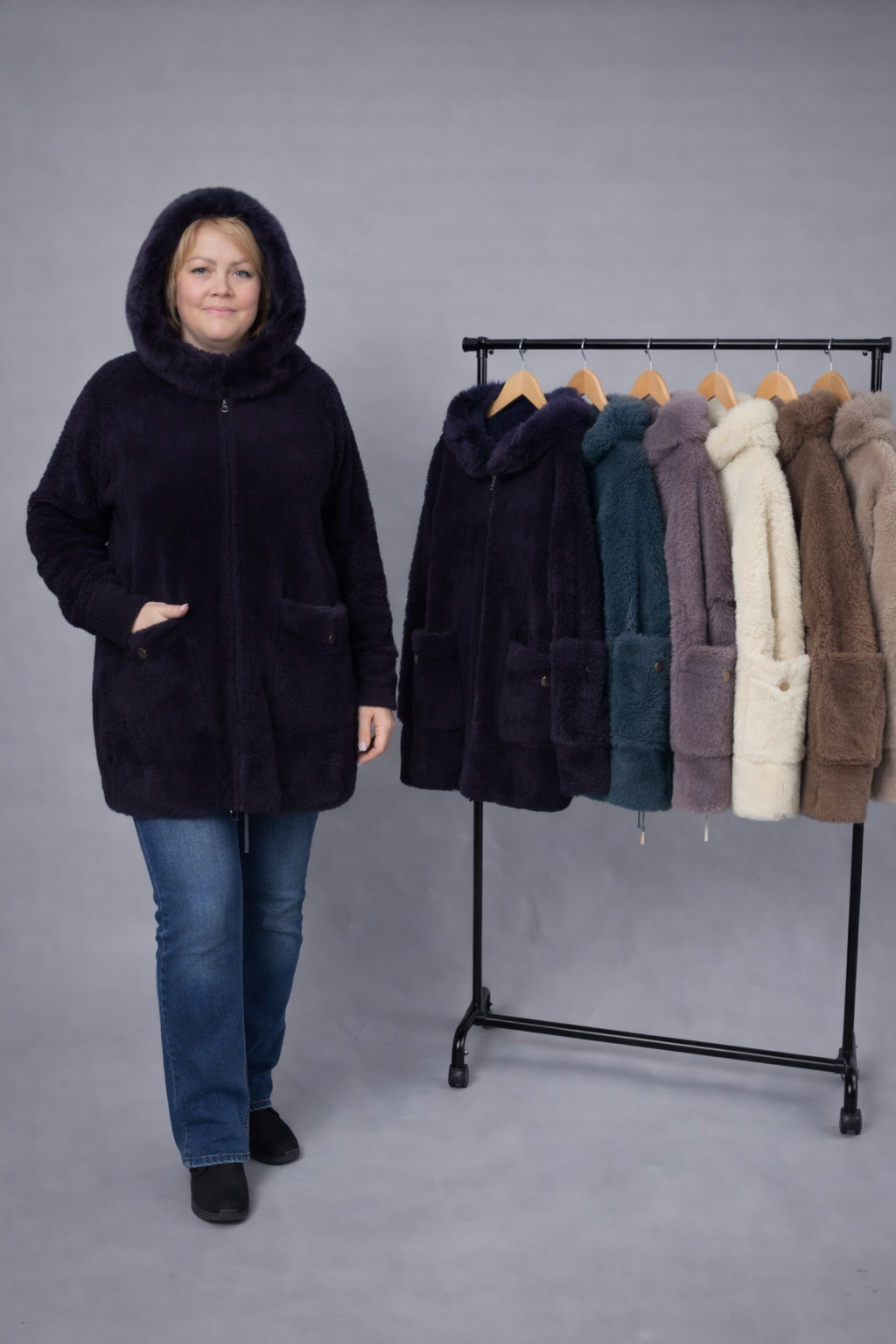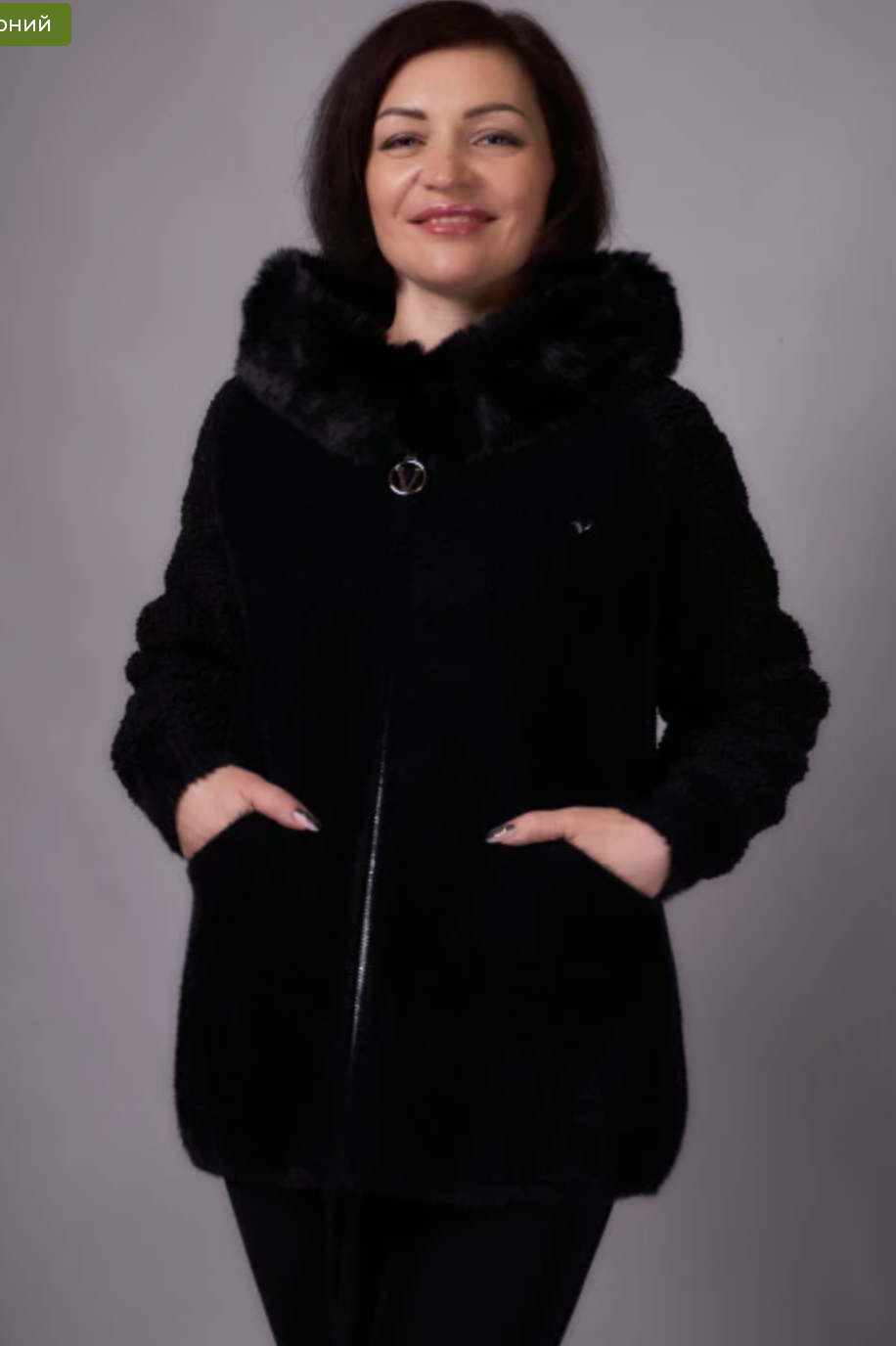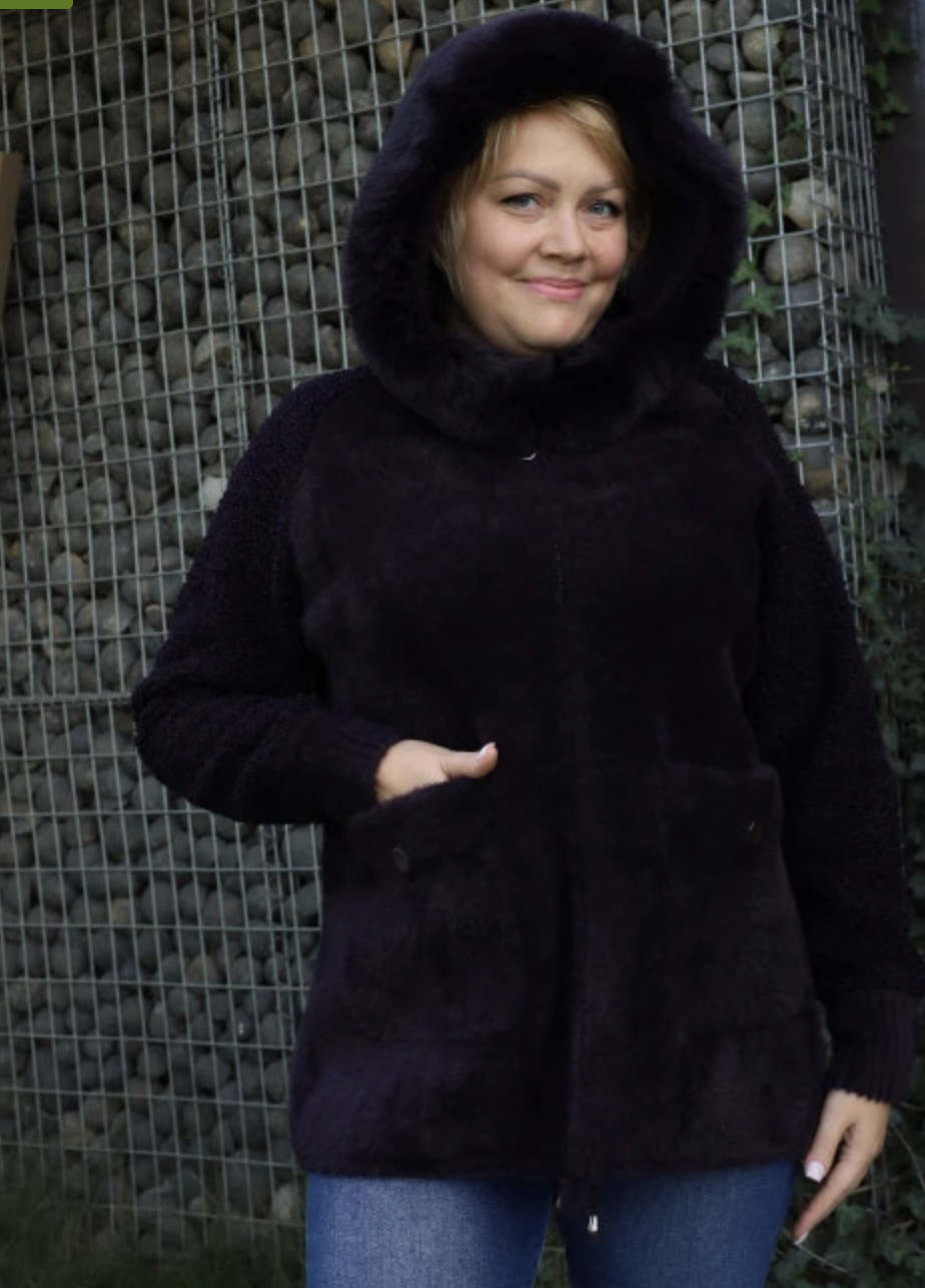 Теплий кардиган з капюшоном та м’якою хутряною окантовкою. Прямий вільний крій, застібка на блискавку, зручні накладні кишені. Комфортний і стильний варіант на кожен день. Розміри 46–66.